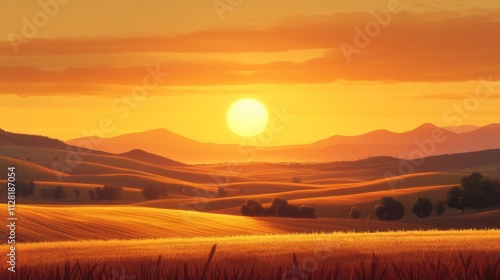 Obraz premium Golden Sunset Over Rolling Hills And Fields