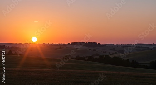 Obraz premium Golden Sunset Over Rolling Hills Landscape in Countryside