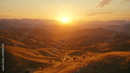 Fototapeta premium Golden Sunset Over Rolling Mountain Ranges