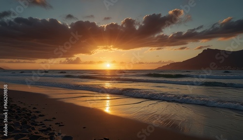 © Василь Тігай, Fototapeta premium Golden Sunset Over Serene Beach
