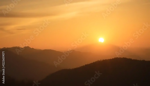 Fototapeta premium Golden Sunset Over Silhouetted Mountain Ranges