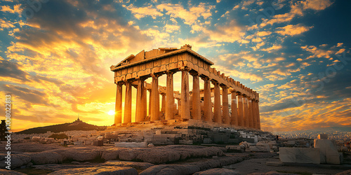 Obraz premium Golden Sunset Over the Historic Parthenon in Greece
