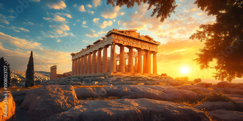 Obraz premium Golden Sunset Over the Historic Parthenon in Greece