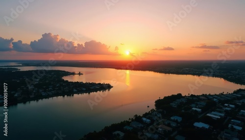 © SwathiFX, Obraz premium Golden sunset over tranquil waters