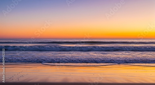 Obraz premium Golden Sunset Reflected on Calm Ocean Waves at Dusk