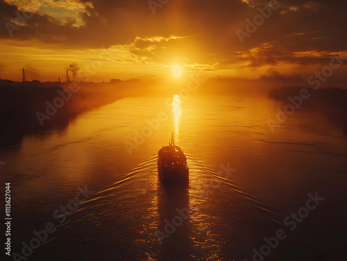 Fototapeta premium Golden Sunset River Vessel