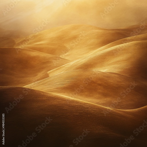Obraz premium Golden Sunset Serenity: Surreal Desert Dunes Bathed in Warm Light