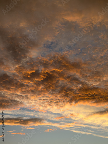 © Amanda, Fototapeta premium Golden Sunset Sky with Dramatic Clouds over the Horizon. Sydney, NSW, Australia.
