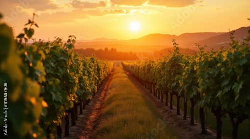 © Cloudy, Fototapeta premium Golden Sunset Vineyard