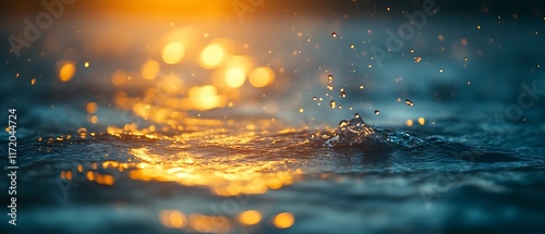 © Popi, Naklejka premium Golden sunset water droplets splash.