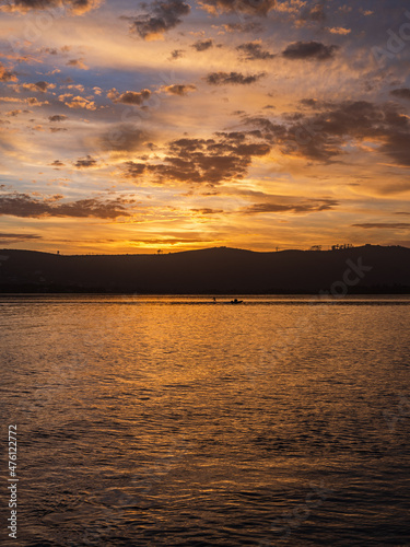 Fototapeta premium Golden sunset with dramatic sky clouds over Knysna lagoon