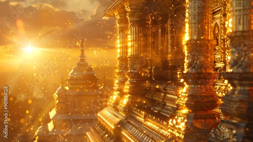 © Teerapat, Fototapeta premium Golden Temple at Sunset.