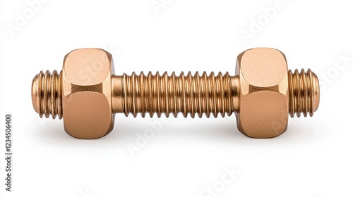© Sengphachanh25, Fototapeta premium Golden Threaded Bolt with Hexagonal Nuts on White Background