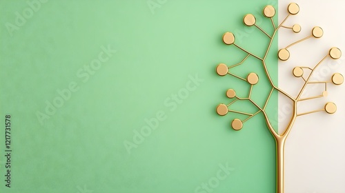 Fototapeta premium Golden tree design on a green and white background, conveying nature and creativity.