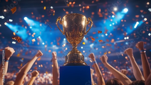 © Berkah, Naklejka premium Golden trophy amidst cheering crowd in arena.