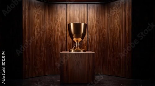 Fototapeta premium Golden trophy display in elegant wood environment dramatic lighting...