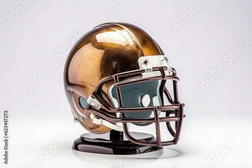 © Deivison, Naklejka premium Golden trophy with American football helmet, white background. Generative AI