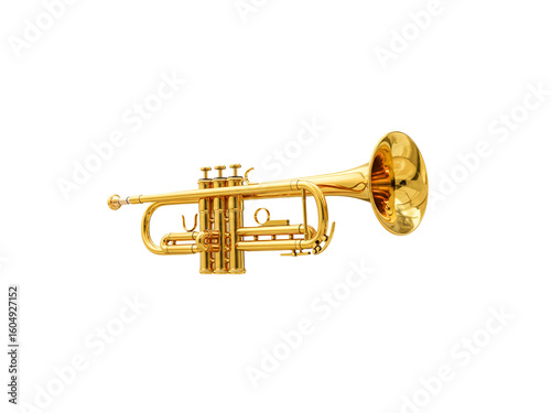 © Goutam, Obraz premium Golden trumpet musical instrument on a white background