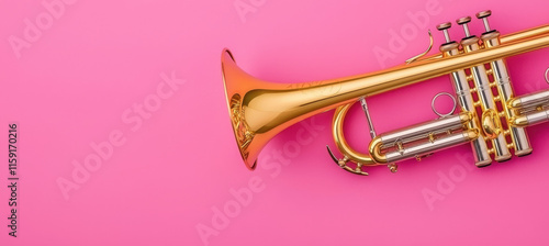 © Photo Graphic Stock, Obraz premium Golden trumpet on vibrant pink background, showcasing intricate details
