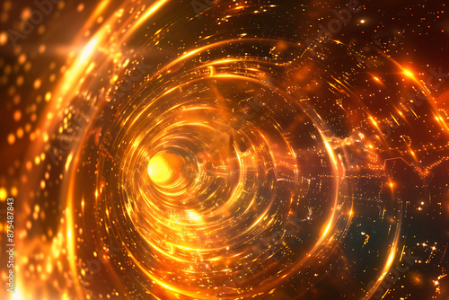 © Artistic Visions, Obraz premium Golden Vortex: Hyperspace Light Tunnel Explosion