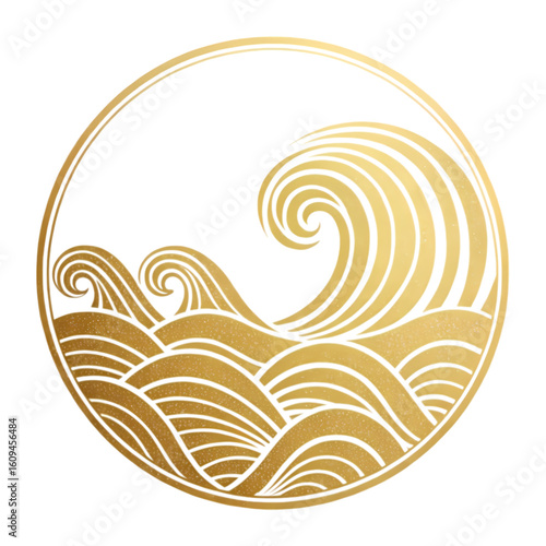 Fototapeta premium Golden Waves in a Circle on transparent background