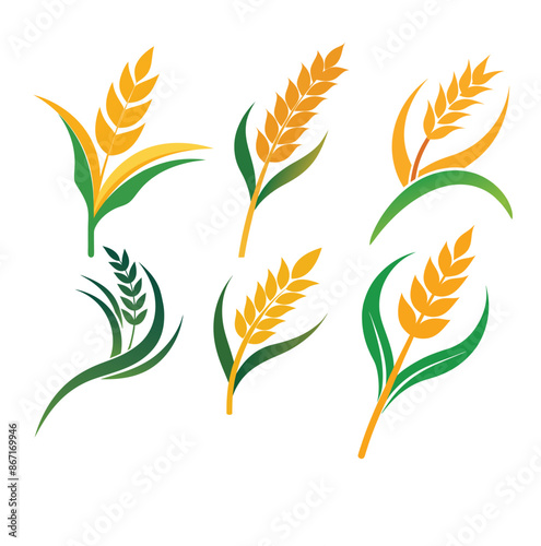 © Bonna, Naklejka premium Golden Wheat Ears and Green Leaves Illustration