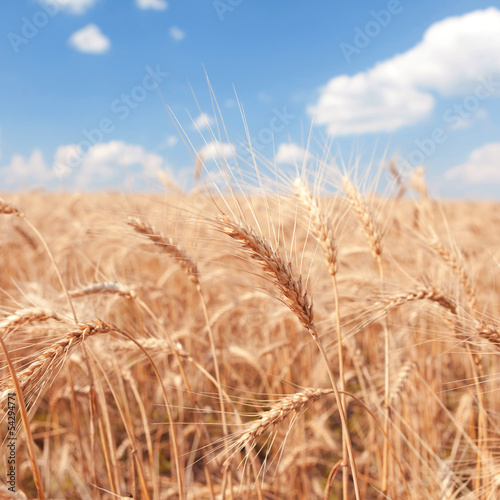 © Dmytro Sunagatov, Fototapeta premium golden wheat field and blue sky background