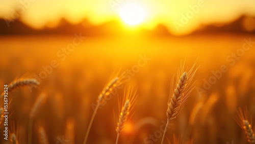 © Chomillera, Obraz premium Golden Wheat Field at Sunset A Stunning Image of Nature's Beauty