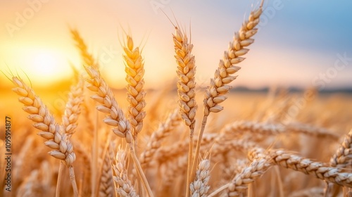 Fototapeta premium Golden Wheat Field at Sunset Agriculture Harvest
