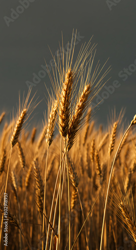 Obraz premium Golden Wheat Field at Sunset Ripe Grain Close Up Agriculture Harvest