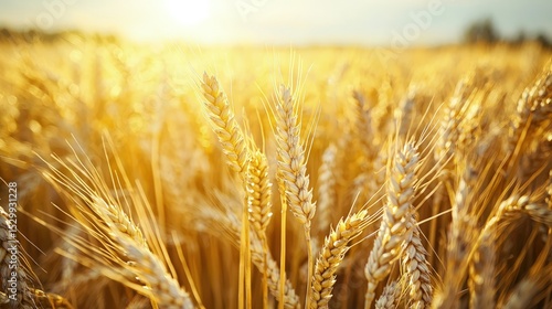 Fototapeta premium Golden wheat field bathed in sunlight.