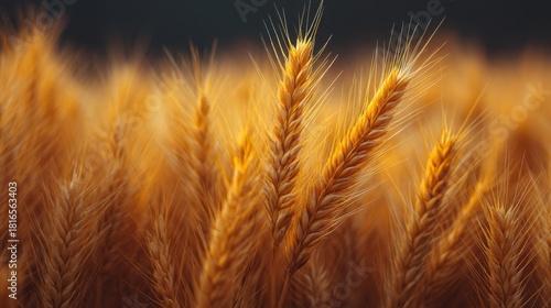 Obraz premium Golden Wheat Field Close Up Capturing Beautiful Wheat Grain Stalks with Soft...