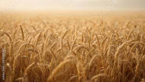Obraz premium Golden wheat field during sunset with tall stalks and ripe wheat. Agriculture...