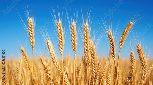 Fototapeta premium Golden Wheat Field Ready for Harvest Under Blue Sky