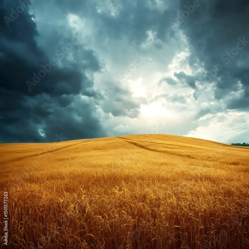 © Alesha, Obraz premium Golden Wheat Field Storm Clouds.