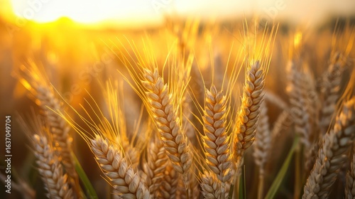 Fototapeta premium Golden wheat field sunset harvest agriculture background food
