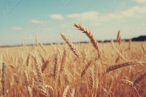 Fototapeta premium Golden wheat field under a blue sky