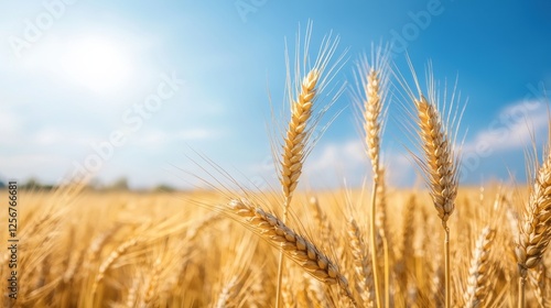 © FoxGrafy, Fototapeta premium Golden wheat field under a bright blue sky