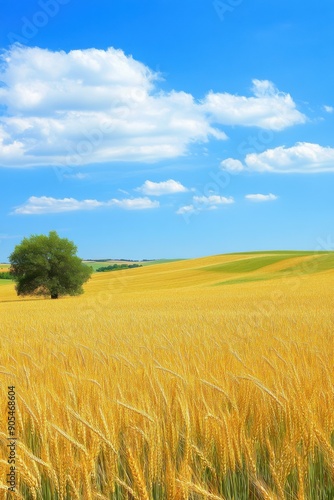© Mykhailo Podolian, Fototapeta premium Golden wheat field under a bright blue sky