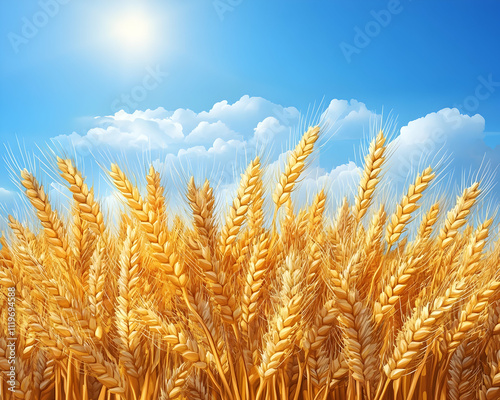Fototapeta premium Golden wheat field under a bright sunny sky.