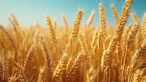 Fototapeta premium Golden wheat field under a clear blue summer sky