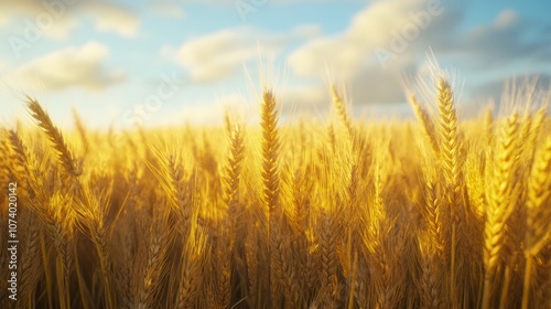 © FANA, Fototapeta premium Golden Wheat Field Under a Cloudy Sky