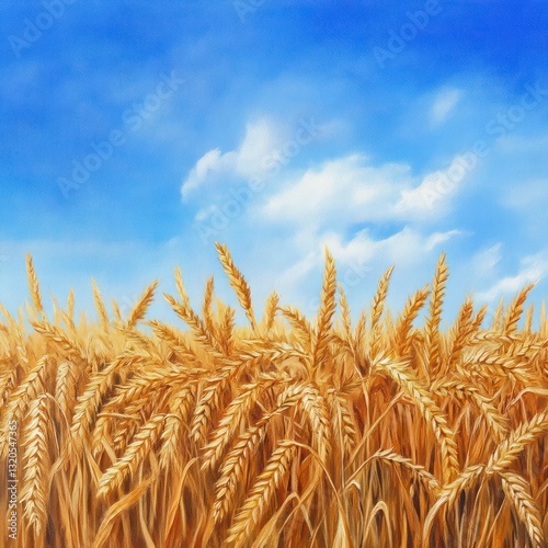 © sok, Fototapeta premium Golden wheat field under blue sky