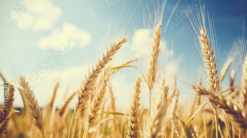 Fototapeta premium Golden Wheat Field Under Blue Sky