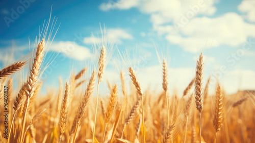 © evening_tao, Fototapeta premium Golden Wheat Field Under Blue Sky