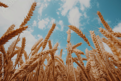 © song, Fototapeta premium Golden Wheat Field Under Blue Sky in Summer