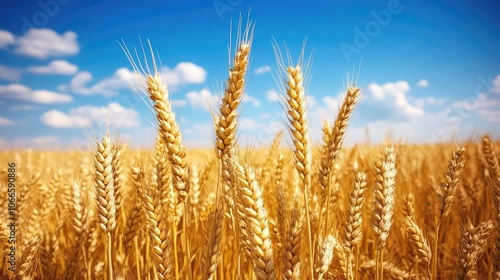 Fototapeta premium Golden Wheat Field Under Blue Sky with Clouds