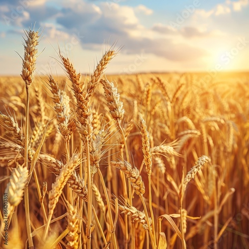Fototapeta premium Golden Wheat Field Under Bright Sky