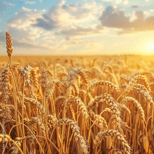 Fototapeta premium Golden Wheat Field Under Bright Sky