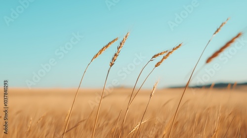 Obraz premium Golden Wheat Field Under Clear Blue Sky